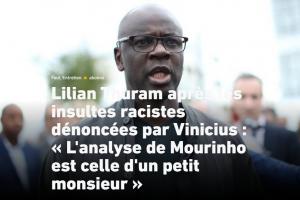 图拉姆:我认为,种族主义问题首先必须由白人社会来解决。为什么那名本菲卡球员要把维尼修斯叫作猴子,把他贬低到动物的层次?因为他心里想的是:我是白人,我是人;你是黑人,你是动物。