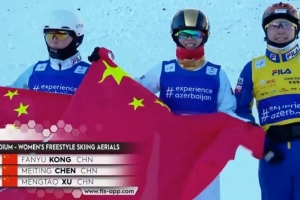 中国选手陈梅婷97.45分摘得银牌,老将徐梦桃97.02分获得铜牌,中国队包揽金银铜。