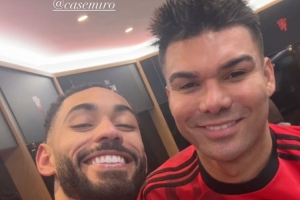 库尼亚赛后更新社媒动态,晒出与卡塞米罗在更衣室的合照,配文:“来自巴西。”