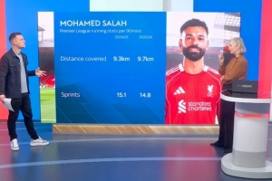 萨拉赫公开炮轰利物浦,引发了轩然大波,天空体育统计了这位33岁埃及前锋的跑动数据,他上赛季英超每90分钟跑动9.3公里,冲刺15.1次,本赛季每90分钟跑动9.7公里,冲刺14.8次。