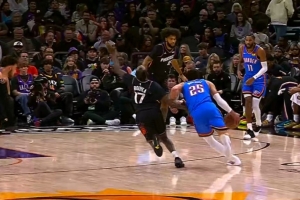 GIF-阿杰伊·米切尔进攻犯规 雷霆挑战成功