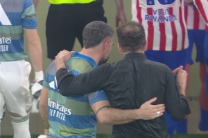 体育资讯1月9日讯 西超杯半决赛皇马对阵马竞的比赛正在进行,记者Abraham P. Romero报道,马竞主帅西蒙尼在半场休息时还找皇马球员卡瓦哈尔聊天,并朝着比赛场地方向比划。