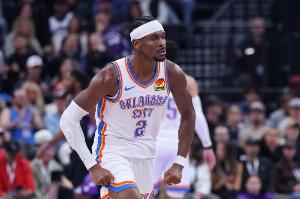 雷霆主将亚历山大开局状态依旧十分火热,不仅投篮很准,还上演一对二超级拉杆打板命中的精彩好戏。