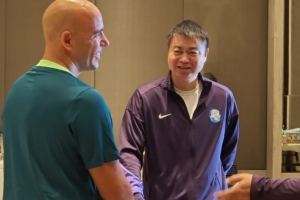 记者顾颖在个人微博写道:葡萄牙籍教练费利佩·佩德罗到海口找国安报到了,刚才早餐时间,费利佩到津门虎餐厅这边打了个招呼,也遇上了主教练于根伟。